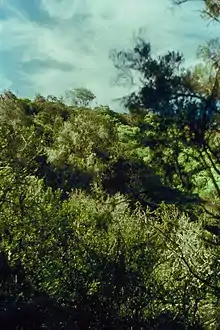 Desde un punto de vista natural, dicha formación boscosa se nucleaba en torno a lo que se conoce como «laurisilva», un conjunto de especies vegetales que toman su nombre de uno de sus principales componentes: el laurel. Además de esta destacan, por su porte y frondosidad, especies como el barbusano, el palo blanco, el til, la faya o el viñátigo, entre otros. En la intrincada espesura del bosque de laurisilva conviven también numerosas especies vegetales de menor porte, como el bicácaro, símbolo vegetal de Canarias, así como numerosos animales, entre los que destacan aves como el pinzón de monte y la paloma rabiche.