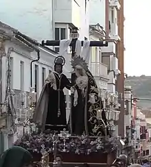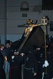 - Cofradía de la Buena Muerte: fundada en 1976. La talla fue realizada en 1981 por Juan Martínez. El "paso" es portado por bastoneros. Los nazarenos visten con túnica negra y cinturón naranja. Podemos encontrar la talla en la Parroquia de Santiago el Mayor.