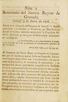 Prospecto del Semanario del Nuevo Reyno de Granada para el año de 1809 | ||