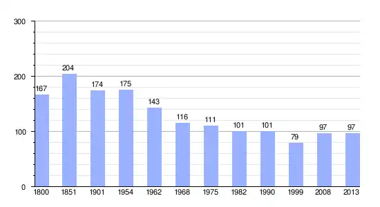 Los datos demográficos contemplados en este gráfico de la comuna de Semerville[4] se han cogido de 1800 a 1999 de la página francesa EHESS/Cassini, y los demás datos de la página del INSEE.[5]