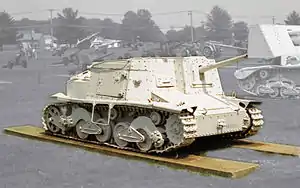 ![]() Un Semovente 47/32, expuesto en el Terreno de Pruebas de Aberdeen. | ||