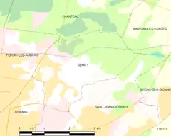 Carte de la commune de Semoy (Loiret) et des communes limitrophes