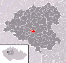Se encuentra ubicada al noroeste de la región y de Praga, al sur del río Ohře (afluente del Elba), al norte del río Berounka (afluente del Moldava) y cerca de la frontera con las regiones de Pilsen y Ústí nad Labem.[1]