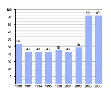 Gráfica de evolución demográfica de Senet de Barrabés entre 1990 y 2006 |