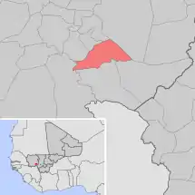 Se encuentra ubicada al oeste del país y al sureste de la región de Kayes, cerca de la frontera con República de Guinea y la región de Kulikoró.