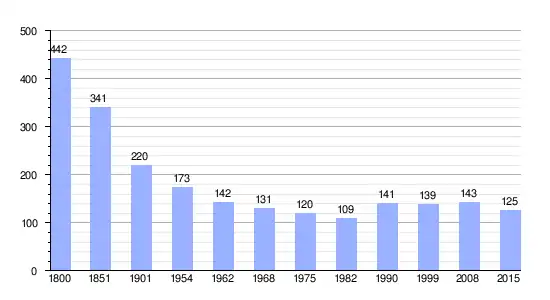 Los datos demográficos contemplados en este gráfico de la comuna de Sentilly[4]se han cogido de 1800 a 1999 de la página francesa EHESS/Cassini, y los demás datos de la página del INSEE.[5]