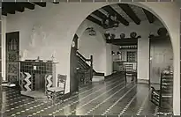 Rafael Masó también diseñó todo el interior del chalet, desde la distribución de las habitaciones hasta los muebles, puertas, pavimentos, techos…, aunque únicamente se tiene noticia de cómo eran el vestíbulo y el comedor. En estas dos estancias el suelo era de azulejos hidráulicos donde se alternaban líneas verticales claras con líneas más anchas de color oscuro. El techo se apoyaba en vigas de madera entre las cuales se intercalaban casetones decorados con un rombo. Con respecto al resto, destacaba el uso de la madera tanto en los muebles, ventanas y puertas como en otros detalles como por ejemplo en las paredes del vestíbulo (forradas con planchas de madera), en la barandilla de la escalera o en el reloj del recibidor. Los motivos decorativos más repetidos en los muebles fueron los rombos y los anillos torneados (muy típicos en los muebles de Masó) que seguían diferentes formas y ritmos de repetición. Masó también utilizó la cerámica verde y amarilla en el interior, en este caso en una de las chimeneas (la del comedor) donde los azulejos dibujaban líneas en zigzag. La chimenea del hall era de piedra moldurada y es muy posible que perteneciera a una masía.
