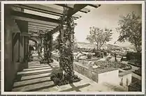 Por último, el mirador que hay en la fachada sur y la terraza apergolada también han sido modificadas. La remodelación consistió en ampliar la superficie del suelo de ambos. Delante del mirador se abrió un nuevo espacio a la misma altura y se eliminaron las barandillas de los antepechos de los arcos que lo cerraban para así conectar los dos espacios. En el caso de la terraza con la ampliación del suelo se eliminaron las dos escaleras que daban acceso al jardín y un murete que delimitaba la zona emparrada. Es muy probable que esta reforma fuera la que hizo que los jardines diseñados por Masó desaparecieran a favor de otros diferentes.[4]