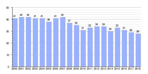Gráfica de evolución demográfica de Seoane entre 2000 y 2018 |