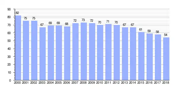Gráfica de evolución demográfica de Seoane entre 2000 y 2018 |