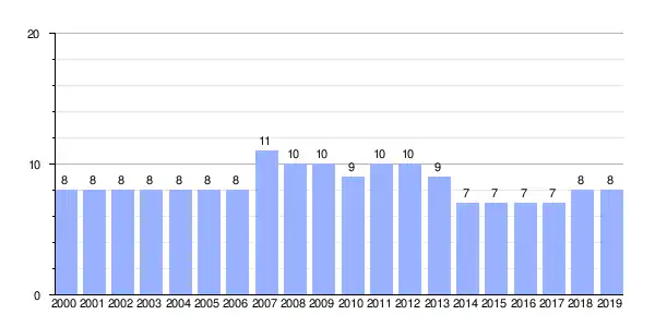 Gráfica de evolución demográfica de Seoane entre 2000 y 2019 |