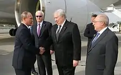 Kisliak saluda a Vladímir Putin en 2015. En medio de ellos se encuentra Vitali Churkin.