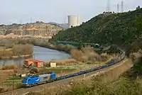 - La locomotora diésel-eléctrica 335.003 de Comsa (Euro 4000 de Vossloh), parada en la salida de la estación de Martorell esperando que salga un cercanías, para retomar su marcha en dirección Castellbisbal.