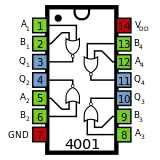 4001 - Cuatro puertas NOR de dos entradas (Quad 2-input NOR gate)![]() |
