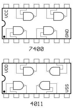 4011 - Cuatro puertas NAND de dos entradas (Quad 2-input NAND gate)![]() |