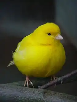 El canario doméstico (Serinus canaria domestica)[3][4] es una subespecie desarrollada durante siglos de selección en cautividad partiendo de ejemplares del canario silvestre o canario salvaje (Serinus canaria), una especie de ave del orden paseriforme de la familia de los fringílidos, endémica de las islas Canarias, Azores y Madeira.[5][6]