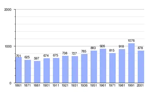 Gráfica de evolución demográfica de Serra d'Aiello entre 1861 y 2001 |