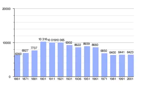 Gráfica de evolución demográfica de Serradifalco entre 1861 y 2001 |