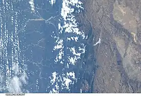 ![]() Vista desde la Estación Espacial Internacional de la serranía de Mosetenes (a la izquierda). | ||