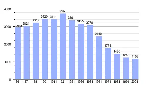 Gráfica de evolución demográfica de Serravalle di Chienti entre 1861 y 2001 |