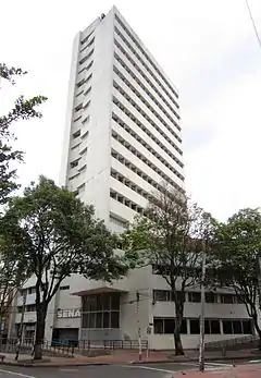 Por espacio de tres años desde 1957, la entidad tuvo como sede principal un edificio ubicado en la Calle 20 con Carrera 8. contando inicialmente con el apoyo de las más importantes organizaciones sindicales de Colombia.[11] Mientras que los primeros centros de instrucción fueron aulas del Instituto Técnico Central y de la Universidad Nacional de Colombia, así como improvisadas carpas de circos levantadas en ciudades y municipios, con el fin de ampliar su cobertura, con lo anterior la naciente institución buscaría atender las demandas de la empresa privada, el Gobierno y de los trabajadores, que exigían más capacitación en procura de mejorar su calidad laboral y de vida.