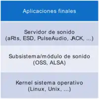 Los servidores de audio se ejecutan trabajando en segundo plano. Reciben llamadas de programas y diferentes flujos de sonido, los mezclan, y envían la salida al dispositivo de audio a través del módulo de sonido que se utilice. En la actualidad, se aprovechan las características avanzadas que proporciona ALSA, lo que ha contribuido a reducir la cantidad de problemas de las distribuciones de GNU/Linux relacionados con el sonido, pues desde la versión 2.6 del núcleo ya se ha integrado como parte de éste.