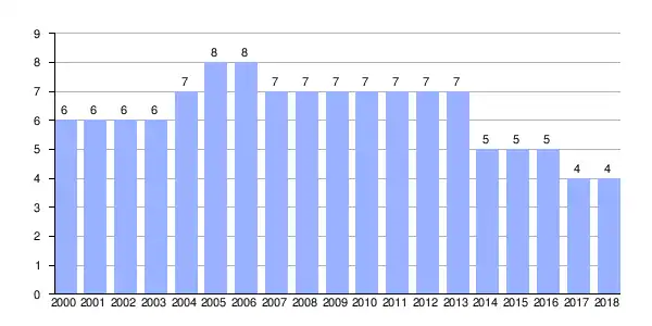 Gráfica de evolución demográfica de Sesa de Arriba entre 2000 y 2018 |