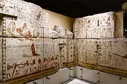 La cámara de las ofrendas, con su dos falsas-puertas destinadas al culto funerario del difunto y su esposa, se sacó del lugar y está actualmente depositada en el museo de la Universidad de Tübingen en Alemania.[2] Las escenas representadas en las paredes de esta capilla conservan toda su frescura y forman parte de las obras maestras de esta clase de entre las expuestas en las colecciones egiptológicas.[3]