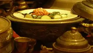 - Gayley, Holly (2013). «Reimagining Buddhist Ethics on the Tibetan Plateau». Journal of Buddhist Ethics 20: 264. ISSN 1076-9005. «Each dish is described in excruciating detail, including the infamous case of eating live monkey brains right out of the skull. »
