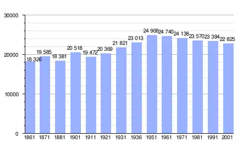 Gráfica de evolución demográfica de Sessa Aurunca entre 1861 y 2001 |