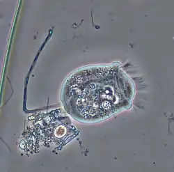 La mayoría de los miembros tienen cinetosomas posteriores modificados que segregan un tallo contráctil. La etapa móvil, denominada telotroch, carece de boca. Son comunes tanto en ambientes de agua dulce como marinos y muchos viven fijados a plantas y animales acuáticos. Algunos son solitarios y otros forman colonias ramificadas. Unos pocos segregan un caparazón. Uno de los géneros mejor conocidos es Vorticella. Los tallos pueden llegar a alcanzar 2 mm, y en los casos en los que son altamente contráctiles pueden extenderse hasta 3 mm.[1][2]