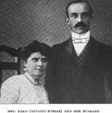 La escuela todavía se conocía con el nombre de la familia Qiriazi (Kyrias), incluso después de la Primera Guerra Mundial. Sevasti participó en el Congreso de Manastir, ayudando con la preparación de los libros de texto. Se dice que publicó una gramática para las escuelas primarias ( Bitola, 1912) y editó un libro de texto sobre historia. Se mudó a Rumania y de allí emigró a los Estados Unidos junto con su esposo, Christo Anastas Dako (1878-1941), periodista, escritor y político, y su hermana Parashqevi, donde colaboró con el Morning Star quincenal ( en albanés, Yll' i mëngjesit ) [1] Christo Anastas Dako pronto abriría la primera escuela albanesa en Estados Unidos. [3]