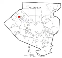 ![]() Ubicación en el condado de Allegheny ![]() Ubicación del condado en Pensilvania ![]() Ubicación de Pensilvania en EE. UU. | ||