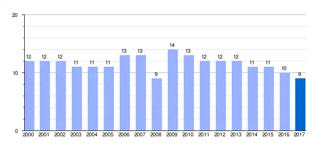 Gráfica de evolución demográfica de Sexmiro[1] entre 2000 y 2017 |