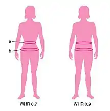 Las mujeres con una cintura relativamente baja en la proporción de la cadera (WHR por sus siglas en inglés) se consideradas más atractivas. La proporción exacta varía entre culturas, según el WHR de las mujeres en la cultura local. En culturas Occidentales, un WHR de 0.70 es el preferido. Otros factores físicos posibles de atracción incluyen índice de masa corporal bajo, circunferencia de cintura baja, piernas más largas, y mayor curvatura de la espalda baja.[4] Preferencia por una complexión de cuerpo esbelta o rechoncha es culturalmente variable, pero en una manera previsible. En culturas donde los alimentos son escasos, la corpulencia está asociada con estatus alto y atractivo, pero en culturas con mayor acceso a los alimentos, ocurre lo contrario.