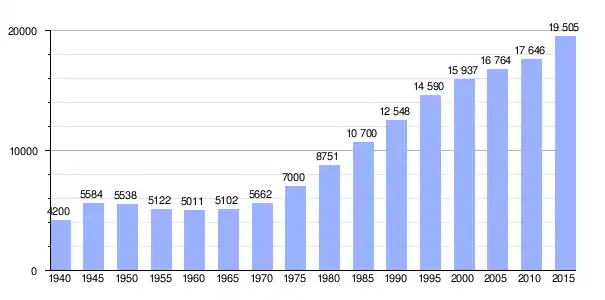 Gráfica de evolución demográfica de Shōwa entre 1940 y 2015 |