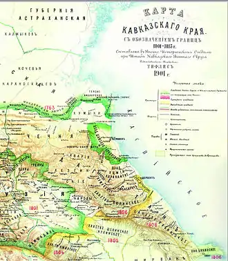 La anexión final del Shamjalato de Tarki y otros territorios de Daguestán a Rusia se realizó mediante el Tratado de Gulistán en 1813. En 1867 se abolió el Shamjalato de Tarki, y en su territorio se formó el distrito Temir-Jan-Shura de Daguestán.[4]