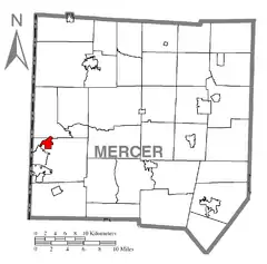 ![]() Ubicación en el condado de Mercer ![]() Ubicación del condado en Pensilvania ![]() Ubicación de Pensilvania en EE. UU. | ||