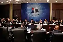 ![]() | Michael Froman, asesor adjunto del consejo de seguridad nacional para asuntos económicos internacionales Sous-Sherpa de Finanzas: Lael Brainard, Under Secretary of International Affairs at the U.S. Department of Treasury | Michael Froman, asesor adjunto del consejo de seguridad nacional para asuntos económicos internacionales Sous-Sherpa de Finanzas: Lael Brainard, subsecretario de Asuntos Internacionales en el Departamento del Tesoro de Estados Unidos |