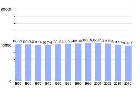 Gráfica de evolución demográfica de Shibata entre 1960 y 2015 |