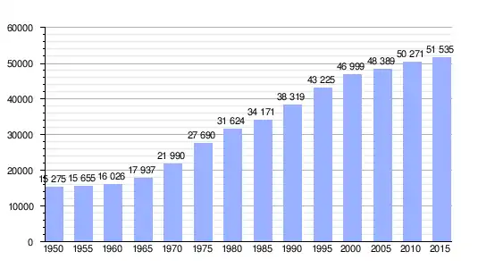 Gráfica de evolución demográfica de Shiraoka entre 1950 y 2015