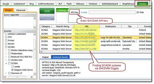 La búsqueda y procesamiento de consultas masivas en Shodan, se pueden realizar utilizando SHODAN Diggity[13][14] La herramienta gratuita proporciona una interfaz de exploración fácil de usar que conecta con SHODAN a través de SHODAN API.[15]