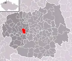 Se encuentra ubicada al este de la región, cerca de la orilla de los ríos Elba y Ohře, y de las regiones de Liberec y Bohemia Central.[1]