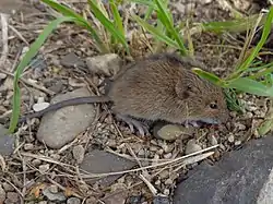 El periodo de cría tiene lugar entre mayo y junio.[3] Construye un nido consistente en una esfera de musgo o hierba en madrigueras excavadas por ellos mismos bajo tierra o tocones de árboles.[3] El periodo de gestación es de entre 4 y 5 semanas, constando la camada de entre 3 y 11 crías.[7]