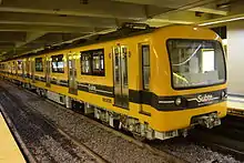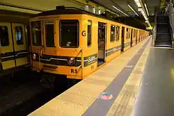 ![]() Siemens O&K durante su último día de servicio en la Línea H, detrás se aprecia su reemplazo, un Alstom Metrópolis Serie 300 | ||