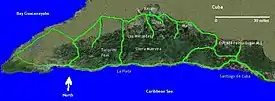 La Sierra Maestra es una cadena montañosa en la región suroriental de Cuba principalmente en las provincias de Granma y Santiago de Cuba. Su más alta elevación es el Pico Turquino con 1.974 msnm el cual se sitúa en el corazón de la Sierra.