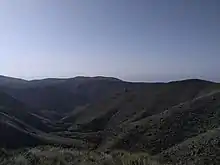 ![]() Estribaciones orientales de la sierra, con Sierra Alhamilla al fondo a la derecha y Sierra de Filabres al fondo a la izquierda | ||