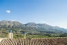 Su posición este-oeste con una naturaleza accidentada hace de barrera intercomarcal, teniendo por el sur a la Marina Baja y por el norte al Condado de Cocentaina y a la Marina Alta. Hacia el este la sierra continúa pero bajo la denominación de La Jortá, pues verdaderamente no podemos hablar de una discontinuidad entre ambas montañas.