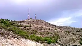 La sierra forma un promontorio alargado al norte del casco urbano de Elda, el cual llega hasta la base de la montaña, encajonando la ciudad, y que hace de frontera física hacia Sax. La carretera CV-833 tiene un pequeño puerto de montaña que la atraviesa. En el ángulo de 90º se encuentra el Hospital Virgen de la Salud de Elda, que da servicio a todo el Medio y Alto Vinalopó. En lo alto, también se encuentran 2 grandes antenas de radiodifusión, una de ellas la que utiliza Radio Elda.