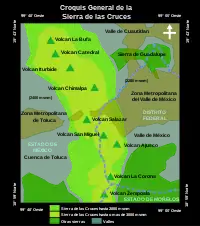 La Sierra de las Cruces se forma sobre la base de ocho estratovolcanes traslapados, los cuales se denominan de sur a norte:[4]